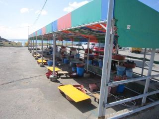 スカイウォークからながめた感じでは、山も高く観光客が歩くのは難しそうです。スカイウォークから階段を降りていくと、駐車場と小さい規模の海女村がありましたが閉店中でした。