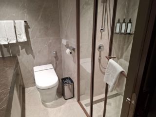 浴槽はないですが、シャワールームは扉があり一段低くなっているので水がトイレの方に流れることはありませんでした。喫煙所は1階の外にあります。日本語はそこそこ通じます。ワオパスの機械が2台あり便利です。