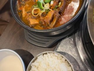イベリコスユッ、ウコジピョヘジャングッ、マッコリを注文。